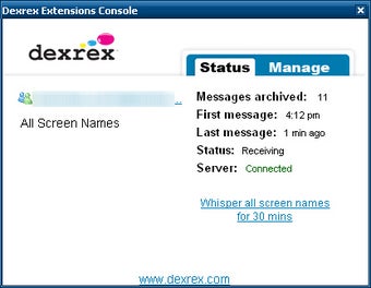 O serviço também é gerenciado completamente por meio da página web e funciona com a maioria dos programas de chat. Windows Live Messenger, ICQ, Emesene, Pidgin, Skype... Guarde todas as conversas que quiser dentro do seu perfil do Dexrex.